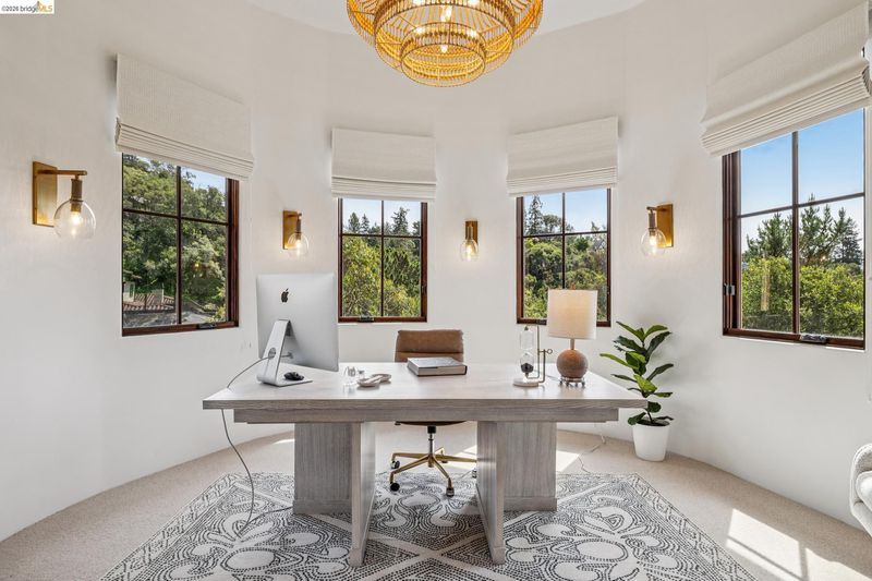 Beautifully set on almost two thirds of an acre, 3 Maxwelton Rd. is an elegant Mediterranean-style retreat. This home pairs resort-like amenities with a polished coastal California aesthetic. Interiors evoke a relaxed but sophisticated Santa Barbara vibe, anchored by a living room with vaulted ceilings that showcase both light and scale, with French doors wrapping around the elegant balcony. A formal dining room opens to a private patio, creating a seamless setting for indoor-outdoor entertaining. The expansive chef's kitchen is designed for both function and presence, with a large center island and professional-grade appliances, including a six-burner Thermador range, dual dishwashers, Miele refrigerator and a separate wine and beverage cooler. On one side of the kitchen, the breakfast area opens out to the pool and outdoor entertaining areas, while the other side features an inviting family room, where French doors lead to a sunlit patio. On the main level are two bedrooms joined by a Jack-and-Jill bath, along with a large laundry room and half bath. Upstairs, a light-filled circular office is complemented by an adjacent media room, two additional bedrooms and a full bath. The primary suite is positioned for maximum light and privacy, and includes two large walk-in closets, a gas fireplace, a deluxe bath and access to its own patio. The grounds function as a private retreat, and include an Endless Pool with a continuous current, a hot tub and a sport court with basketball hoop. A grassy play area and sprawling deck expand the outdoor play/entertaining space and are surrounded by mature live oak trees and beautiful landscaping creating a peaceful oasis. Additional features include central air conditioning, a three-car garage with extra parking, 3 Tesla Powerwalls, owned solar panels, high end finishes, and light fixtures. Not to be missed!