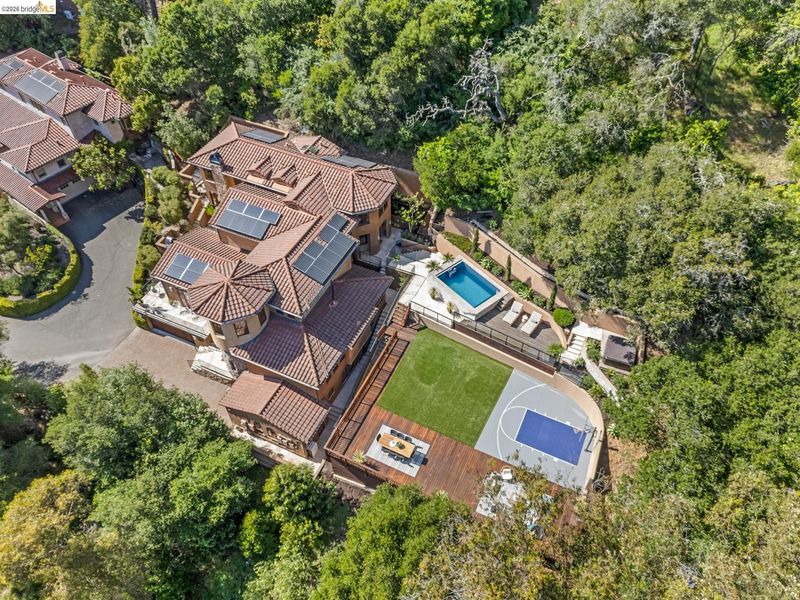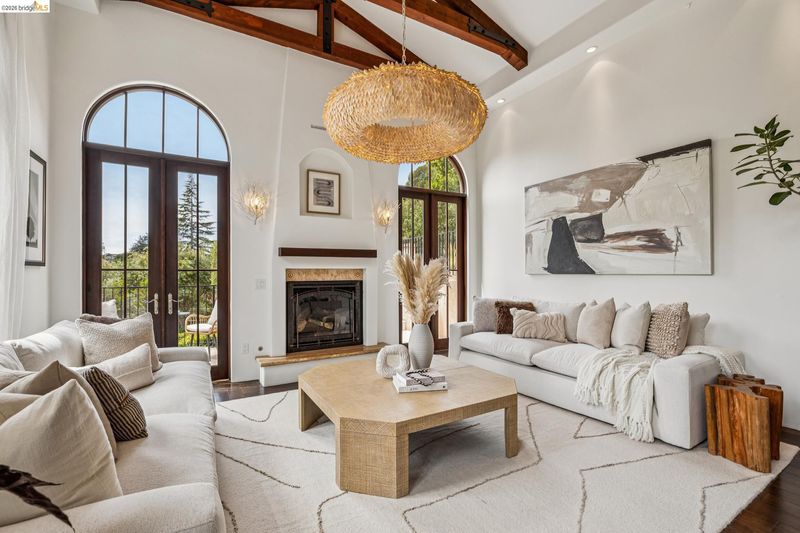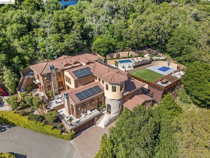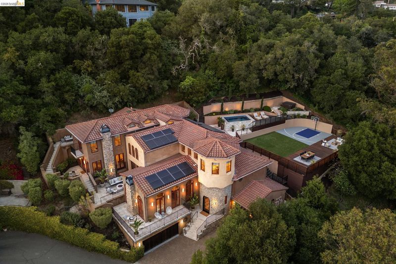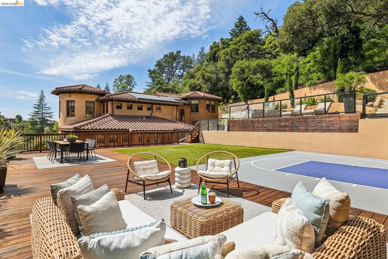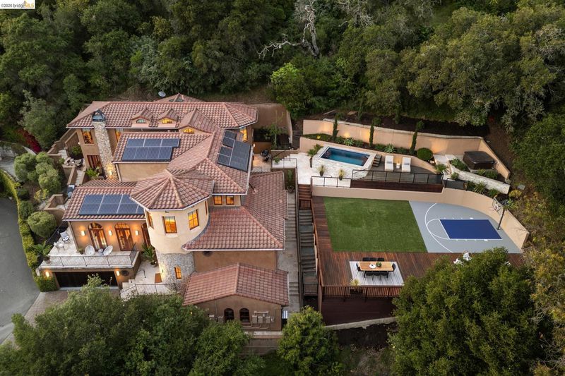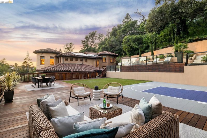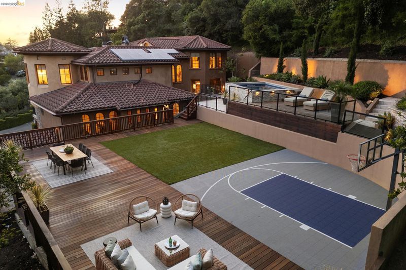 Exceptional Mediterranean retreat on over half an acre with vaulted ceilings, chef’s kitchen, multiple patios, and private primary suite. Resort-style grounds feature pool, hot tub, sport court, and mature oaks. Must see!