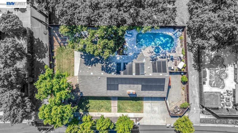 Desirable Colony Park neighborhood w/Owned Solar! This 2,130 sq ft home sits on a generous 11,050 sq ft lot, offering 4 bedrooms, 2.5 bathrooms, & an open, functional layout ideal for both everyday living and entertaining. Vaulted ceilings, hardwood floors & fresh int. paint throughout. The large kitchen & dining area feature granite counters, an island with storage, slide-out shelving, and ample cabinetry. The primary suite offers dual closets & a spa-like bath with dual shower heads, while ceiling fans throughout the home & a new 2024 high-efficiency heat pump system with UV air purification provide year-round comfort. Step outside to your backyard oasis featuring a remodeled solar & gas heated saltwater pool and spa, a Trex composite deck, and a covered patio with outdoor theater wiring—perfect for BBQs and movie nights. The fully owned 24-panel Enphase solar system with battery backup keeps energy costs low and provides power to essential areas during outages. The expansive side yards offer RV/boat parking, fruit trees, and a shed with power. The yard area is also plumbed for a future outdoor kitchen and garden well pump. Conveniently located near major shopping centers, restaurants, BART, and commuter routes including Hwy 680 and 242.