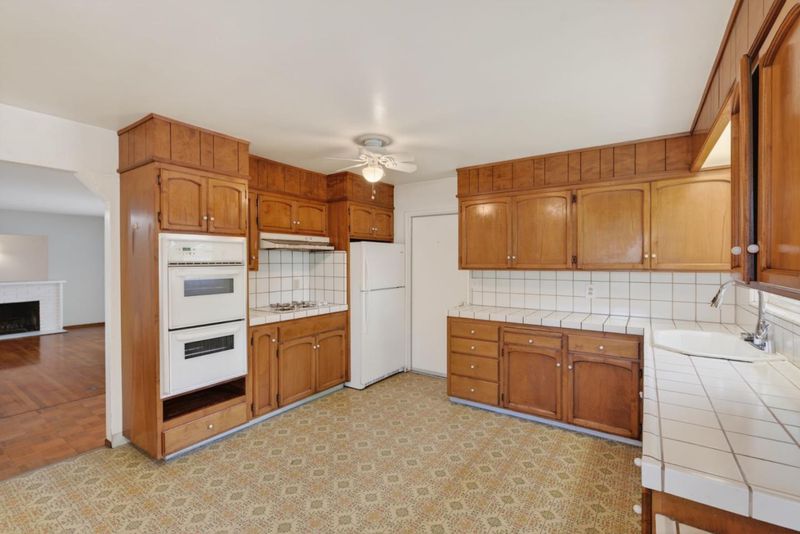 - Cooktop - Gas, Countertop - Tile, Dishwasher, Exhaust Fan, Garbage Disposal, Hookups - Gas, Microwave, Refrigerator
