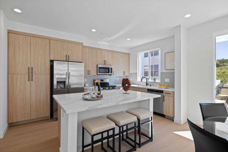 - Countertop - Quartz, Dishwasher, Garbage Disposal, Island, Microwave, Oven Range - Electric, Refrigerator