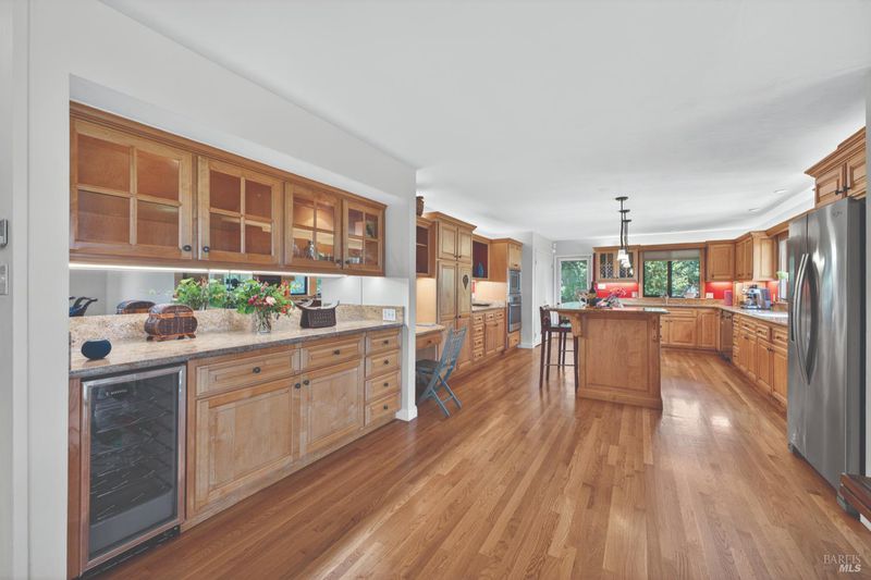 Set behind gates on Westside Road and tucked along a private lane in the sought-after Madrona Knolls neighborhood, this Healdsburg residence offers a rare combination of privacy, natural beauty, and close-to-town convenience. Surrounded by mature landscaping with dogwoods, citrus and plum trees, azaleas, rhododendrons, roses, and seasonal color, the setting feels peaceful and established while remaining just minutes from Healdsburg Plaza, acclaimed dining, tasting rooms, and boutique shopping. Inside, soaring approximately 25-foot windows in the great room frame sweeping southern valley views, distant mountains, memorable sunrises, and the changing light across the landscape. Abundant natural light, rich hardwood flooring, and generous living spaces create an atmosphere that is both comfortable and refined. Designed for everyday living as well as entertaining, the home offers four bedrooms and three baths, including two spacious primary suites positioned on opposite ends for privacy and flexibility. At the center of the home, the kitchen, dining, and great room connect naturally and flow to expansive view decks and outdoor gathering spaces. A private wine cellar with tasting area adds to the wine country setting, while the gated grounds provide a sense of retreat. A distinctive offering in one of Healdsburg's most desirable hillside neighborhoods.