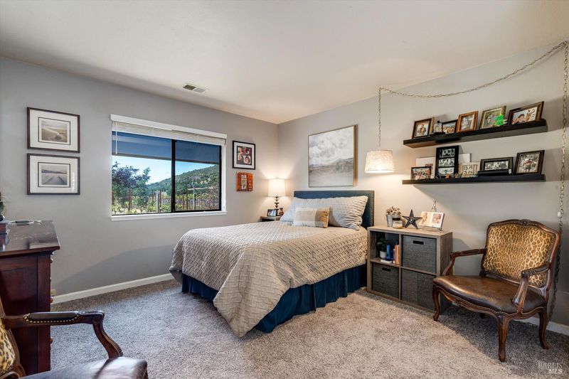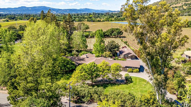 Welcome to Wine Country! Located on a quiet lane, experience pastoral living among vineyards and verdant landscaping with expansive views of Mount George and the surrounding hills. This gracious home, set on 1.96+/- acres features 4 bedrooms and 3 bathrooms and a fully equipped country kitchen. Enjoy the family room with lighted built-in wine closet and entertainment area. The formal dining and living rooms share a custom wood burning fireplace. The expansive primary bedroom opens to the backyard, bocce court, a 2 bedroom, 2 bath cottage and a 1.0+/-acre Cabernet Sauvignon vineyard. Just minutes to world renown golf, notable wineries and restaurants and nearby hiking and bike paths- this is living at its best. Note- The property will not be available to view May 15-17.