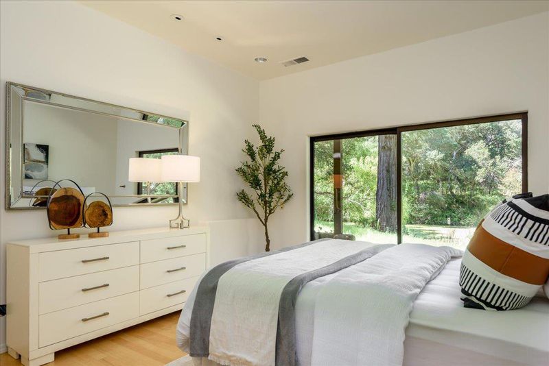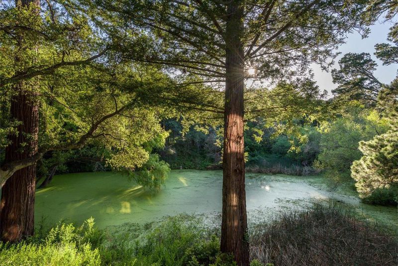This home personifies tranquility. Nestled in a serene country setting just minutes from I-280 and top-rated Portola Valley schools, this beautifully updated 6-bedroom, 2- Office 3+-bathroom custom designed home perfectly balances rural privacy with modern convenience. The interior boasts an expansive, light-filled atmosphere defined by cathedral ceilings and large windows that frame the surrounding natural beauty. High-end functional upgrades include a spacious center island kitchen with adjacent family area & fireplace. A formal dining room overlooking the pond and into the Redwoods. A spacious living room with soaring ceilings and fireplace. A large primary bedroom with a spacious walk in master bathroom and a nice private deck with a hot tub. 2 artist studios / offices. One was used a pottery studio the other was a photographic studio. Outside, the property serves as a private retreat with direct access to local hiking and biking trails. An additional magical feature is the adjacent pond. This provides a magical setting and helps the home create an oasis of peace and tranquility.