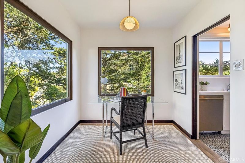 Carmel-Inspired Mediterranean Retreat! Tucked away on a quiet cul-de-sac, 43 Rockwood Court offers a rare blend of charm, privacy, and architectural character in a truly enchanting, Carmel-like setting. Surrounded by lush, sylvan landscaping and set on an oversized lot with ocean views, this unique Mediterranean home feels like a private retreat just moments from city conveniences. Rich in period detail, the home showcases beautiful beam ceilings, handcrafted tile work, and a stunning dining room crowned with a dramatic canopy ceilingan unforgettable space designed for elegant dinners and lively gatherings. Expansive windows throughout invite in natural light and capture serene outlooks from nearly every room. The original charming kitchen has great neighborhood views and a commercial-style Wolf range. The flexible floor plan includes three bedrooms and two original vintage bathrooms, along with a fourth bedroom or family room option. Parking for two small/medium-sized vehicles in the garage, plus a substantial storage area (laundry or game room) and an additional large sub-basement provide exceptional potential for expansion or additional living space. The terraced backyard spans over a 5,700 sq ft lot. Peaceful and secluded, yet ideally located near shops, transportation, and major freeway access, this is a rare opportunity to own a truly distinctive home in one of San Francisco's hidden gem settings.
