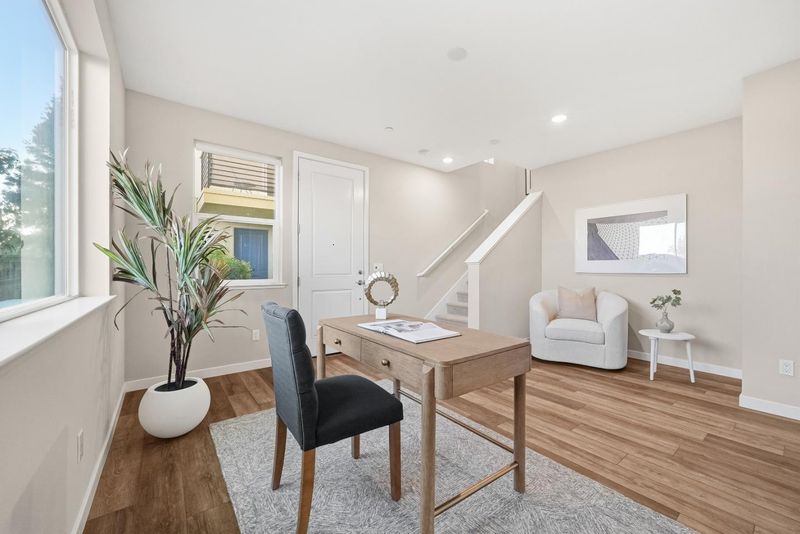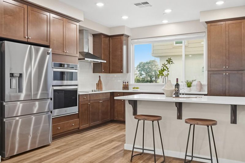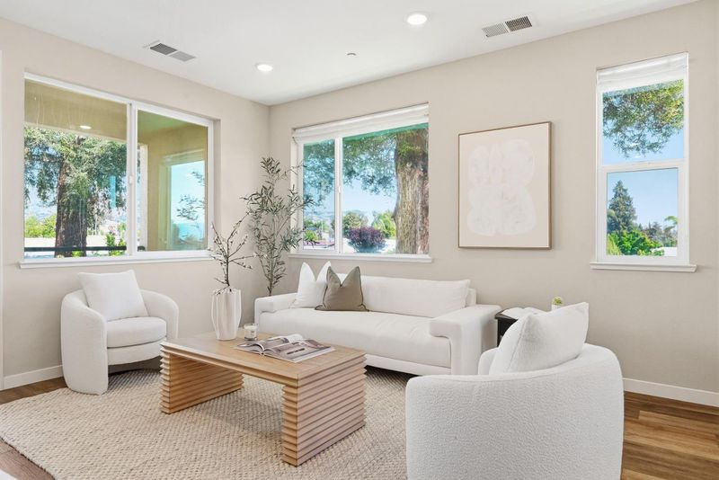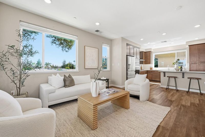 Prime location within the community! Built in 2019, this END-UNIT townhouse is filled with incredible natural light, lovely open views, and a SIDE YARD - a rare feature for a newer-built townhouse. The open-concept living area is surrounded by multiple windows that bring in abundant sunlight and a sense of openness, and seamlessly connects to a private balcony. The stylish kitchen is equally impressive, featuring a large island, stainless steel appliances, a built-in oven and microwave, and a large picture window that fills the space with more natural light. The ground floor offers a versatile room ideal for a family room, home office, or playroom. Upstairs, the primary suite includes double vanities, a stall shower, and a walk-in closet, along with two guest bedrooms and a full bath. Additional highlights include a side-by-side 2-car garage, Tesla solar panels, and wiring in place for EV charging. Community amenities include a dog park, city park, playground, clubhouse, and BBQ area. Conveniently located near VTA Light Rail, HWY 680, and Berryessa BART, with nearby shopping including Grocery Outlet, Sprouts, Target, Safeway, and Costco. Low monthly HOA dues of $288. This home offers a wonderful blend of modern comfort, community amenities, and everyday convenience. A must-see!