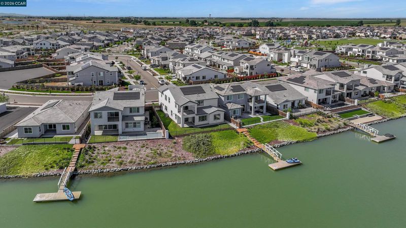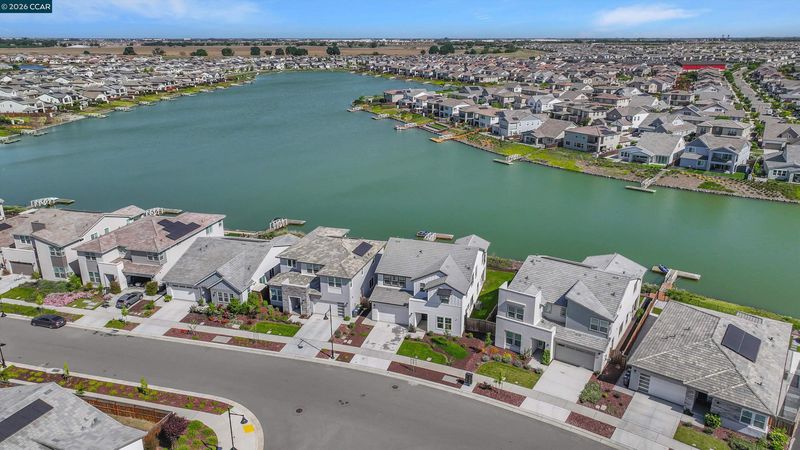 OPEN HOUSE SATURDAY + SUNDAY 12-3PM. Set amid the community landmark, Skye Lake within River Islands' most sought-after enclave, 3368 Mulholland Drive sets a new standard for lakefront living in the Central Valley. Completed in 2024, this KIPER-built Plan 3 residence occupies a premier lakefront position on Skye Lake — the largest and most coveted lake in River Islands master community. Offering direct water frontage, 360-degree views, and semi-private dock access, the property delivers a luxury living experience, without comparison. Spanning nearly 3,700 square feet across a generous, fully landscaped lot, the home presents five bedrooms, in additon to an oversized loft + flex space, private gym, and custom glass-enclosed office. Wide-plank herringbone hardwood floors made for a grand entrance, and extend throughout the home, complemented by a focal stone fireplace, custom glass stairway railing, and a chef's kitchen featuring a double island, glass backsplash and walk in pantry — A luxury interior that balance warmth, fine detail and architectural precision.The primary suite opens to a private balcony with unobstructed views of Skye Lake, offering an intimate connection to the water that defines the home's most distinguished feature. Below, semi-private dock access invites kayaking, fishing, and leisurely exploration of the lake at will. Owned solar, finished front and rear landscaping, and a 2024 build date ensure the property is as efficient and turn-key as it is refined. River Islands provides the surrounding infrastructure to match — walking trails, a community boathouse, incredible parks and acclaimed charter schools within the neighborhood. A rare convergence of new construction quality, lakefront position, and community excellence. North facing, set directly on Skye Lake, 3368 Mulholland Drive is a true showstopper, and sets a new standard for lakefront luxury living in the Central Valley.