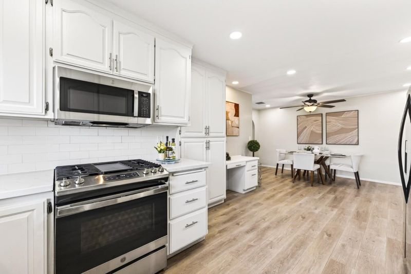 - Cooktop - Gas, Countertop - Quartz, Dishwasher, Garbage Disposal, Hood Over Range, Microwave, Pantry, Refrigerator