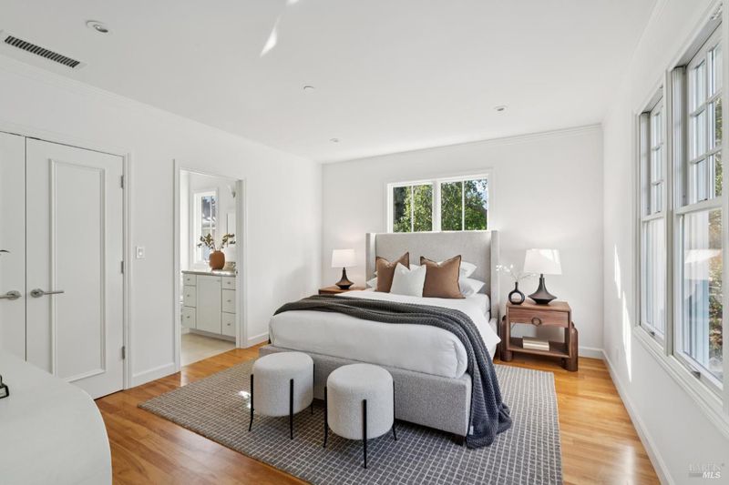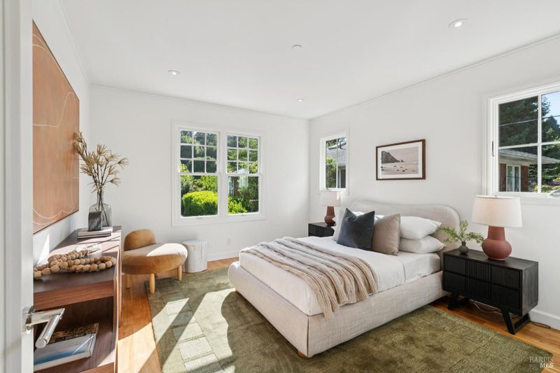 Tucked along what many consider the most coveted, tree-lined street in Sycamore Park, 124 Sycamore Ave captures that unmistakable Father of the Bride magictimeless, warm, and effortlessly inviting. Set on a rare double lot, this home offers a sense of space and privacy that's nearly impossible to find in Mill Valley. A classic Ipe wood front porch welcomes you in, where all-day sunshine pours across the property, creating a bright, uplifting atmosphere from morning to evening. Inside, the scale and craftsmanship immediately stand out. A dramatic two-story entry and soaring 10-foot ceilings set the tone, while solid core doors and hardwood floors throughout speak to the home's exceptional build quality. Designed for both everyday living and entertaining, the elegant formal dining room pairs beautifully with a thoughtfully designed kitchen featuring a charming built-in banquette and an oversized walk-in pantry. The heart of the home opens seamlessly to the outdoorskitchen and living spaces lined with multiple French doors that invite you into a completely fenced, private yard, perfect for hosting, relaxing, or letting kids play freely. Upstairs, four bedrooms on one level offer the layout today's buyers crave, including three ensuite bedrooms for comfort and flexibility. With five bedrooms total, there's space for guests, a home office, or whatever your lifestyle demands. Adding even more versatility, the property includes a beautifully appointed ~450 sq ft guest unitideal for visiting friends and family, an au pair, or a private work-from-home retreatalongside a detached two-car garage that blends seamlessly with the home's classic architecture. And then there's the locationjust a short stroll to the vibrant Mill Valley Depot, where cafs, shops, and gathering spaces create a daily rhythm reminiscent of a European piazza. This is Mill Valley living at its best: classic charm, modern functionality, and a rare sense of spaceall in one of the town's most beloved neighborhoods.
