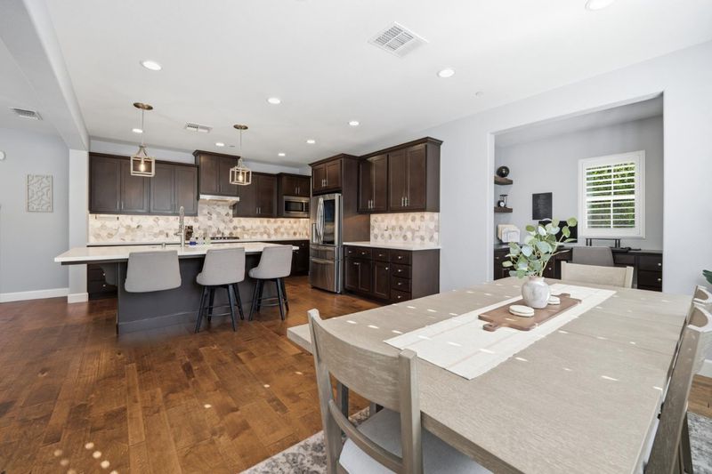 Welcome to this stunning 4-bedroom, 3-bathroom home located just off Cochrane Road and Highway 101 in the highly coveted Lantana Wisteria community, one of Morgan Hill's most sought-after neighborhoods within the Golden Triangle. From the moment you arrive, the pride of ownership is undeniable; every detail has been expertly maintained and thoughtfully cared for. The versatile floor plan offers a full bedroom and bathroom on the main level, perfect for guests or multigenerational livingplus a dedicated office nook off the kitchen for those work-from-home days. The heart of the home flows effortlessly for both everyday living and entertaining. Upstairs, the sun-drenched primary suite serves as a true retreat, overlooking a stunning backyard oasis. The luxurious en suite features a soaking tub, oversized shower, double vanity sinks, and an impressive walk-in closet. Two additional spacious bedrooms and an open loft round out the upper levelideal as a second living area, playroom, media room, or easily converted into a 5th bedroom. Location is everything, and this home delivers. Top-rated schools, parks, and the charm of downtown Morgan Hill are all just minutes away.