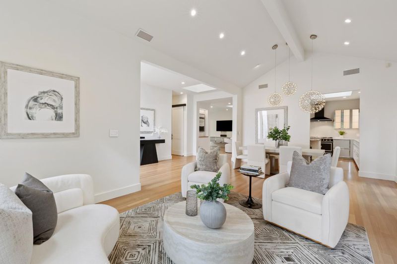 This sophisticated modern farmhouse represents a rare fusion of classic architecture and 2026 state-of-the-art construction. Extensively remodeled with city permits, the home exceeds typical renovation standards, offering an effective age of 1996 paired with the pristine quality of a brand-new estate. The interior is a masterclass in design, featuring level 5 smooth drywall, soaring ceilings, and bleached cherry hardwood flooring. A stately entry with transom glass leads to a living room anchored by a modern linear fireplace, while the chefs kitchen shines with a La Cornue range and paneled Sub-Zero and Miele appliances. The open-concept family room dissolves the boundary between indoors and out via a premium folding door system, leading to a lush yard boasting a private orchard of pomegranate, loquat, plum, and citrus trees. Practicality meets luxury with a private fourth bedroom situated like a secondary suite and a primary retreat with a spa-caliber bath. For the enthusiast, the oversized garage serves as a premier workshop with ample power and dedicated EV charging. Every detail of this turnkey residence has been curated for the buyer who demands high-end craftsmanship and architectural integrity in a premier North Los Altos location.Top schools: Almond, Egan, Los Altos High