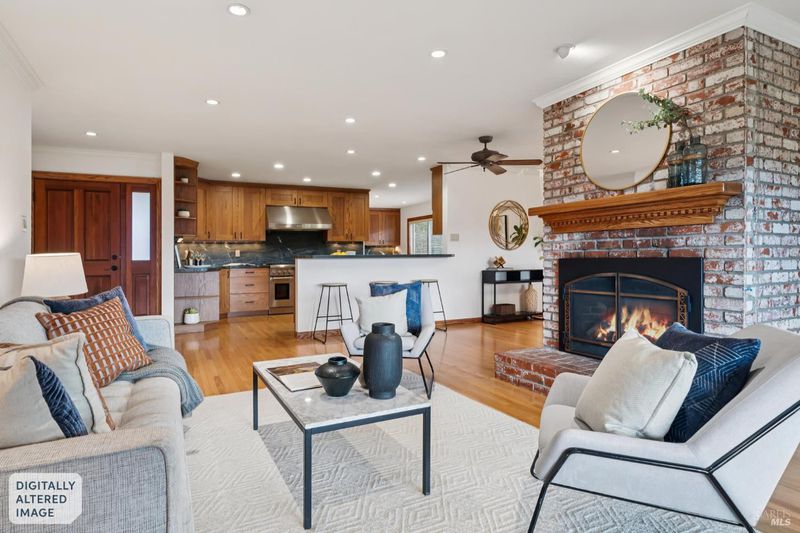 Situated on a 10,625 sq ft lot in desirable Upper Sun Valley/Rafael Highlands, this charming single-level 3BR/2BA home offers 1,533 sq ft with panoramic Mt. Tam views. Charming curb appeal with drought-tolerant landscaping, paver driveway, and walkways. Open floor plan features a fireplace, recessed lighting, fresh interior paint, double-pane windows, mini-split A/C, and hardwood floors. Updated kitchen with Thermador stainless appliances, built-in refrigerator, stone countertops, breakfast bar, and adjoining family/dining area. Private backyard with deck, lawn, and sparkling pool, plus detached workshop/garden shed. Conveniently located near Sun Valley School, hiking trails, and downtown San Rafael and San Anselmo.