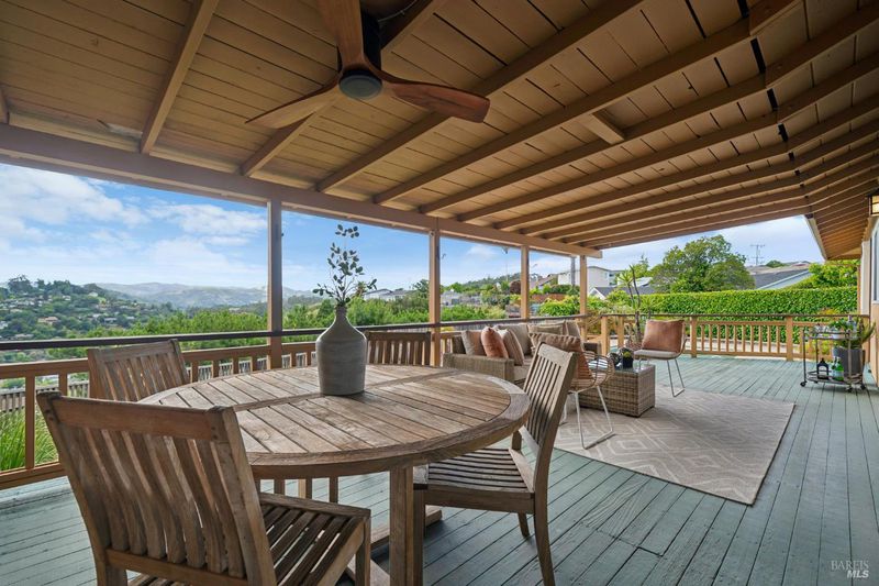 This property is a winner! Views! Views! Views! yet close to town! Situated on a 10,625 sq ft lot in desirable Upper Sun Valley/Rafael Highlands, this charming single-level 3BR/2BA home offers 1,533 sq ft with panoramic Mt. Tam views. Charming curb appeal with drought-tolerant landscaping, paver driveway, and walkways. Open floor plan features a fireplace, recessed lighting, fresh interior paint, double-pane windows, mini-split A/C, and hardwood floors. Updated kitchen with Thermador stainless appliances, built-in refrigerator, stone countertops, breakfast bar, and adjoining family/dining area. Private backyard with deck, lawn, and sparkling pool, plus detached workshop/garden shed. Conveniently located near Sun Valley School, hiking trails, and downtown San Rafael and San Anselmo.